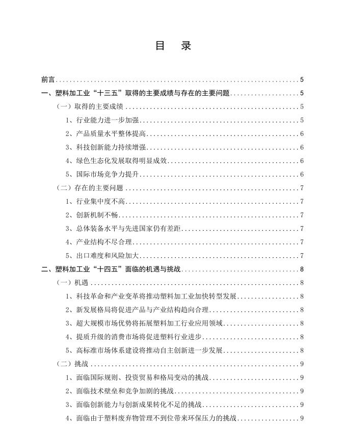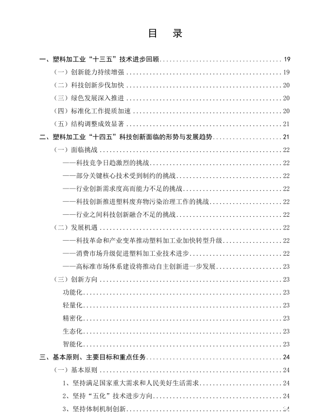 塑料加工业“十四五”发展规划指导意见目录如下: