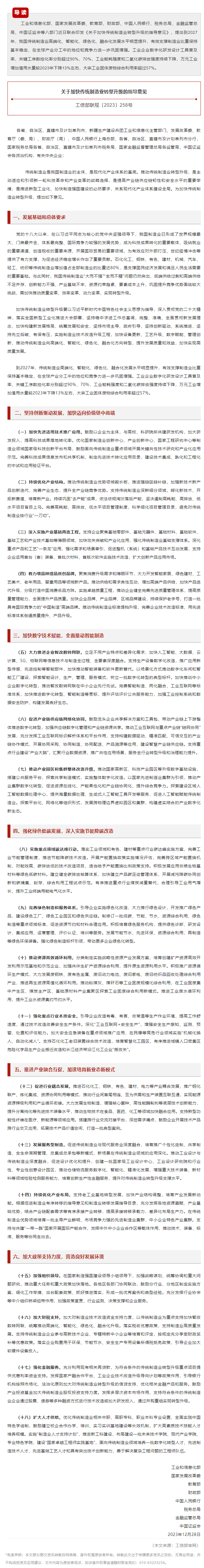 政策速递 | 工信部等八部门联合印发《关于加快传统制造业转型升级的指导意见》