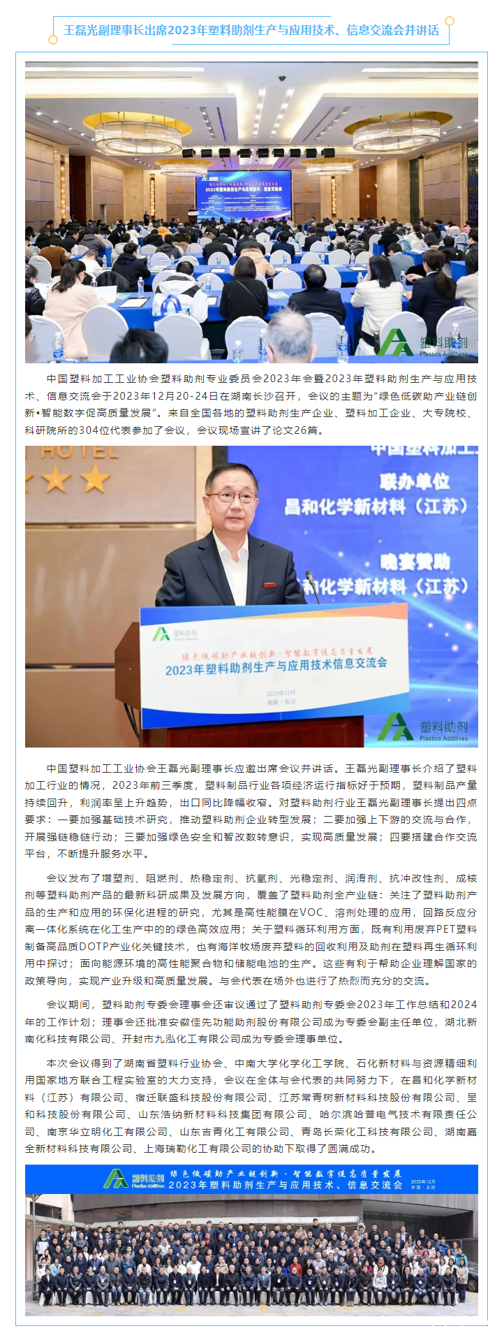 王磊光副理事长出席2023年塑料助剂生产与应用技术、信息交流会并讲话