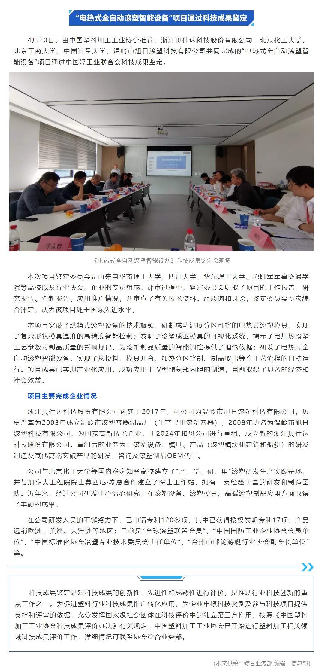 “电热式全自动滚塑智能设备”项目通过科技成果鉴定