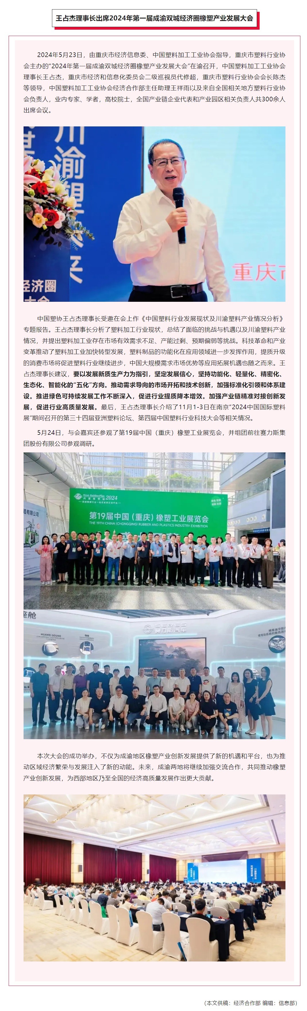 王占杰理事长出席2024年第一届成渝双城经济圈橡塑产业发展大会